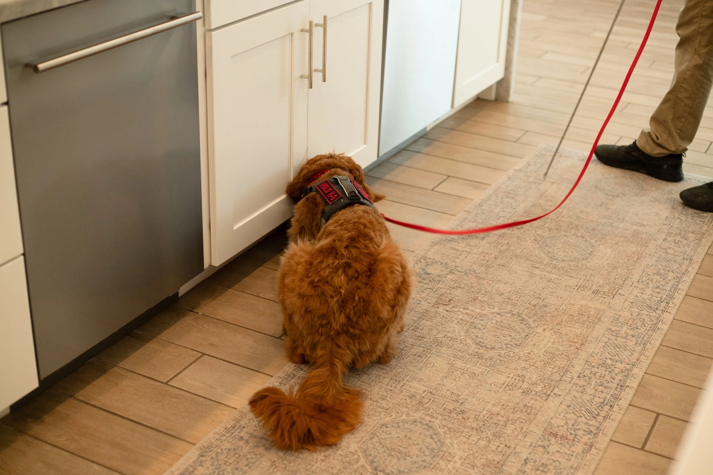 Luna has gone through an extensive and rigorous training to be able to detect mold in hidden places. She can smell mold through walls, cabinets, and flooring in your home.
